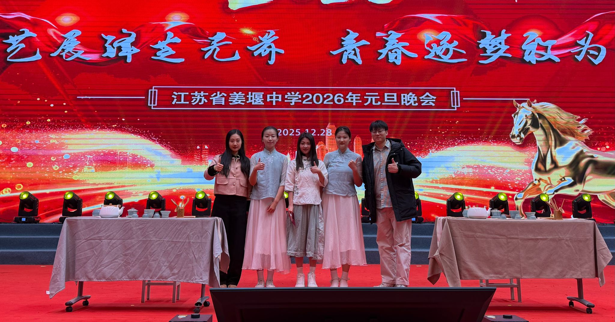 12月29日晚,江苏省泰州市姜堰中学元旦晚会现场茶香袅袅,古韵悠长。应姜堰中学邀请,老虎机app-老虎机游戏下载 茶艺协会的同学们走进中学校园,呈现了一场融合了传统文化底蕴与青春活力的茶艺表演。
