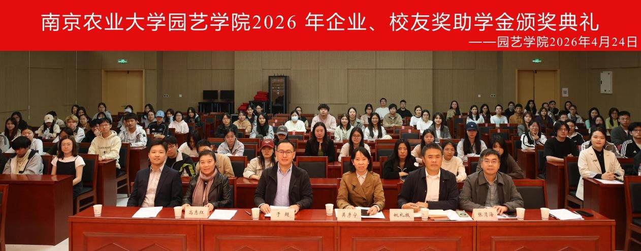 在滨江校区园艺楼142报告厅隆重举行2026年企业、校友奖助学金颁奖典礼。园艺专业2000级校友、江苏百绿园林集团有限公司副总经理、党支部书记姚礼报,设施科学与工程专业2008级校友、创想姜来(江苏)智慧科技有限公司总经理于超,老虎机app