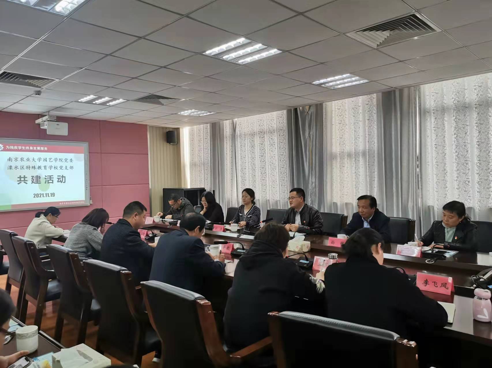 党员师生与溧水特殊教育学校领导老师的一次立德树人、园艺基地建设的交流讨论。