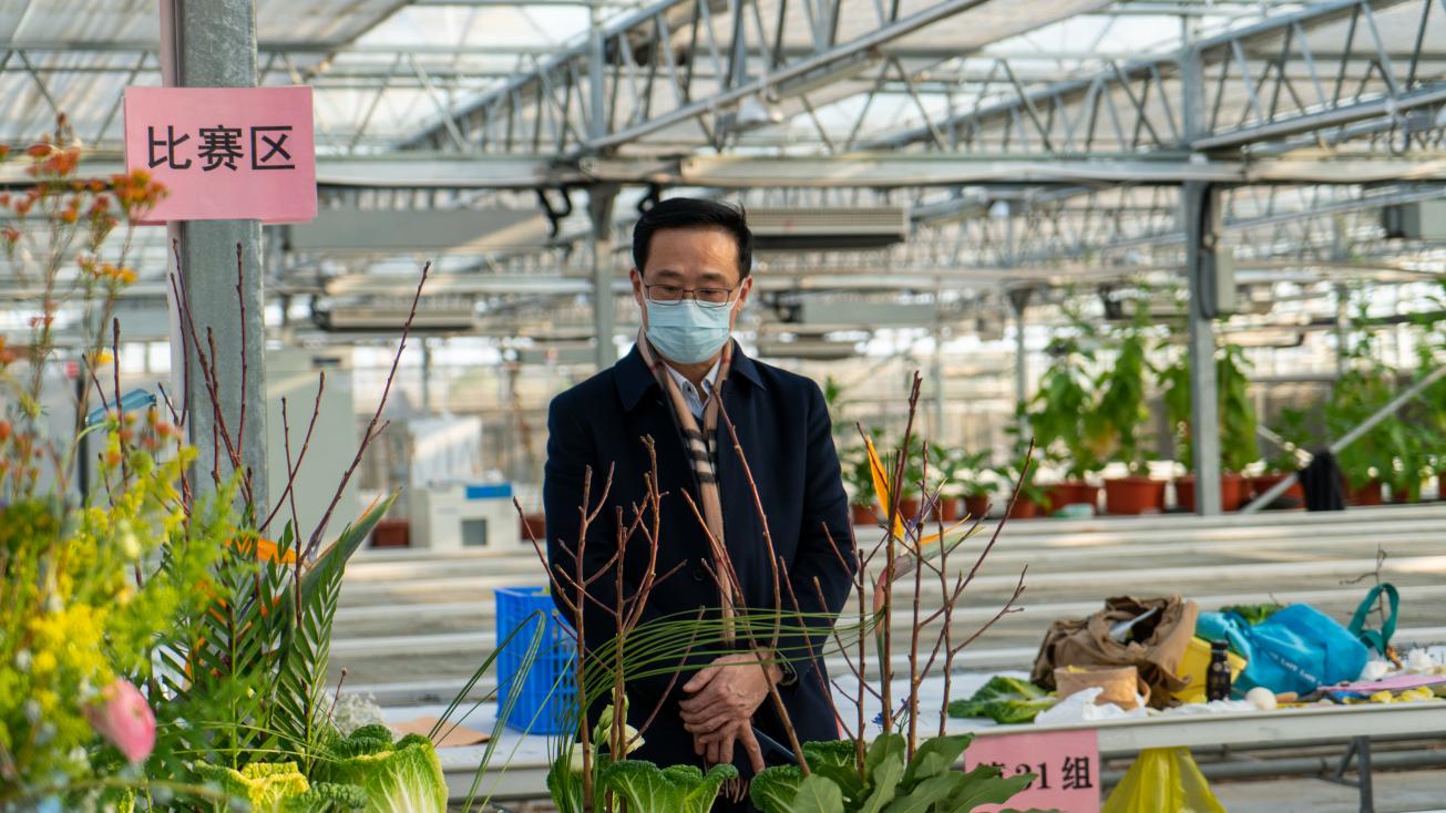 南京农业大学胡锋副校长表示,本次比赛的主要“花材”——“黄玫瑰”白菜,是由南京农业大学侯喜林教授研究团队利用18年时间育成的新品种,整株酷似玫瑰,素有“今天是花,明天是菜”的美誉。“黄玫瑰”白菜的口感极佳且观赏性较好,受到了市民们的广泛好评,在江苏、上海、安徽、河北、黑龙江等地推广应用。同时,由于“黄玫瑰”白菜可耐-9.6℃低温,有效解决了不结球白菜优质绿色高效生产和季节性问题,社会生态效益显著。‘黄玫瑰’白菜是南京农业大学十三五期间承担的七大作物育种重点专项“不结球白菜优质多抗适应性强新品种培育课题(2017YFD0101803)”育成的“重大品种”,“成果总体水平达国际先进,其中不结球白菜的耐寒、晚抽薹育种等方面居国际领先水平”,并于2021年11月荣获神农中华农业科技奖一等奖。