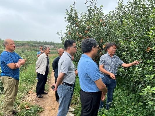 一行考察了临汾苹果种植基地,并与市乡村振兴研究院果树站杨颖站长就产业发展现状、存在问题和未来可能的合作方向进行了深入的探讨交流。