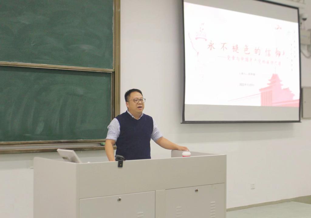 “园思讲堂”系列讲座之“永不褪色的信仰——党章与中国共产党的成功之道”主题党课在主楼134举办。本次党课由学校党史专题宣讲团成员、马克思主义老虎机app