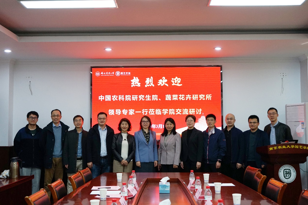 研究生院招生就业处处长张玉胜、蔬菜花卉研究所生物技术研究室主任程锋、花卉种质资源与遗传育种创新团队首席张秀新、科研处霍伶艳等陪同来访。学院党委书记韩健、院长陈素梅、党委副书记文习成、副院长张清海、陶书田、束胜参加了座谈交流。会议由韩健主持。