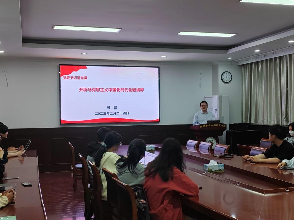 当日,韩健与毕业生党员进行亲切交流,对大家做出的成绩提出表扬,并鼓励大家要牢记初心,在各行各业努力奋发,绽放光彩。他以《开辟马克思主义中国化时代化新境界》为主题进行党课讲授。在会议中,他强调要学习新思想,巩固理论知识,往深里走、往心里走、往实里走;学习十个明确、十四个坚持、十三个方面等重要理论知识;牢记三个飞跃,将理论知识灵活运用到实践中来,为解决当今世界问题提供中国智慧和中国方案。同时,要将所学知识融入实践,知行合一,不断巩固创新,为我国农业现代化发展、全面发展而努力,争做新时代新青年。