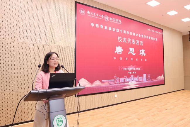 近年来在学科建设、人才培养、科技创新与社会服务等方面取得的成就。她表示,校友们在校时以南农为荣,毕业后南农以校友为耀,这种“双向奔赴”的朴素情感令人感动。她真诚欢迎校友常回家看看,重温青春记忆,感受校园新貌,并继续关心支持母校母院的建设发展,共同为中药产业与教育事业发展注入新动力。