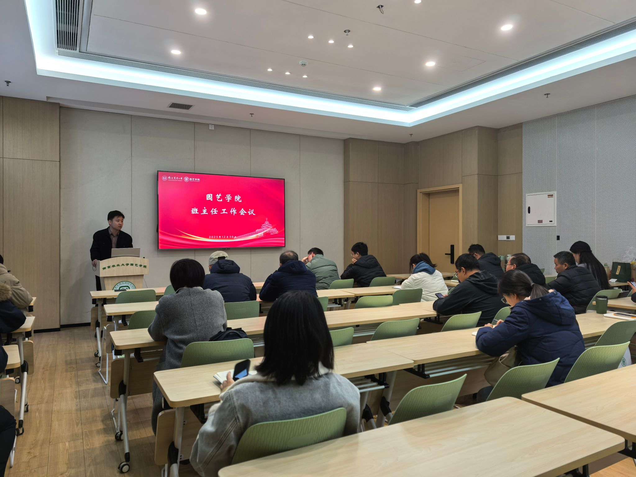 12月30日下午,老虎机app 召开学期末班主任工作会议,系统回顾了本学期学生工作成效,部署期末阶段重点工作。院党委副书记束浩渊、全体班主任及辅导员出席会议。