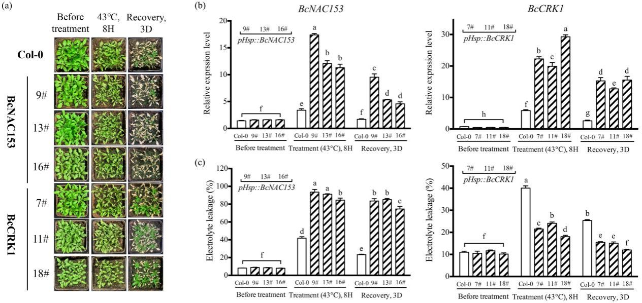 以高温耐受型自交系NHCC001和高温敏感型自交系NHCC002为亲本,构建了包含312个单株的F₂分离群体,并利用全基因组重测序技术构建了一张包含3608个bin标记的高密度遗传图谱,总图距为1156.88 cM,平均相邻标记间距仅为0.32 cM。基于该图谱,研究者在A01染色体上定位到一个主效QTL,可解释6.101%的表型变异。进一步通过转录组数据分析,筛选获得了一个响应高温胁迫的NAC转录因子家族基因,命名为BcNAC153。该基因在高温敏感材料NHCC002中的表达水平显著高于耐热材料NHCC001,提示其可能作为负调控因子参与高温耐受性调控。