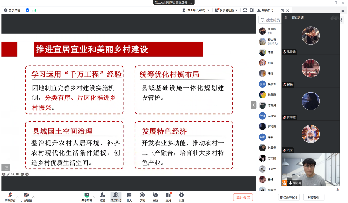 与会同志围绕分类施策、片区推进”的要求展开交流。大家一致认为,坚持精准分类、连片打造,有利于整合资源、形成合力,促进乡村产业升级与整体发展。会议结合观赏园艺学科特点,探讨了在优化乡村生态景观、培育特色产业、助力宜居宜业和美乡村建设等方面的独特优势与实践方向。